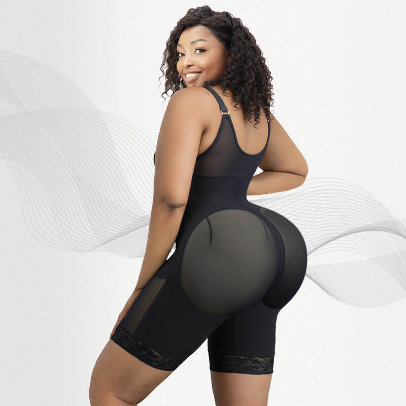 full-body sculpting with our advanced one-piece shaper. It applies uniform abdominal pressure to squeeze fat inward and upward for a flatter tummy and smoother silhouette. The glute-specific zone with compression-free fabric enhances your hips and creates a perfect peach buttock shape.